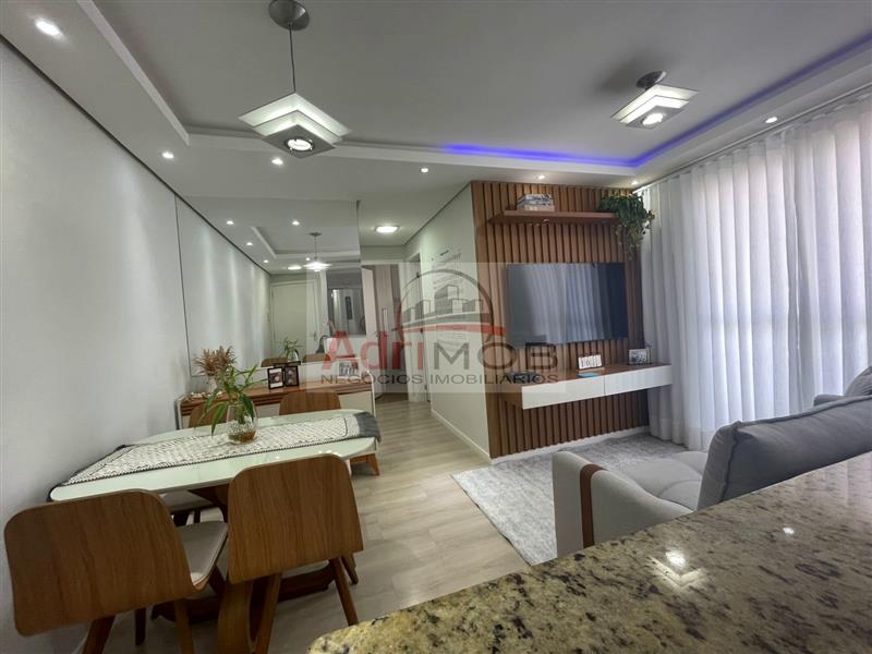 - Apartamento com excelente acabamento de 2 dormitórios com piso laminado e moveis planejados, sala com piso laminado, sanca de gesso, lustres e móveis planejados, cozinha com piso laminado e moveis planejados, banheiro com box de vidro e lavatorio ceramico com gabinete planejado, área de serviço coberta, e uma vaga no estacionamento do prédio.
